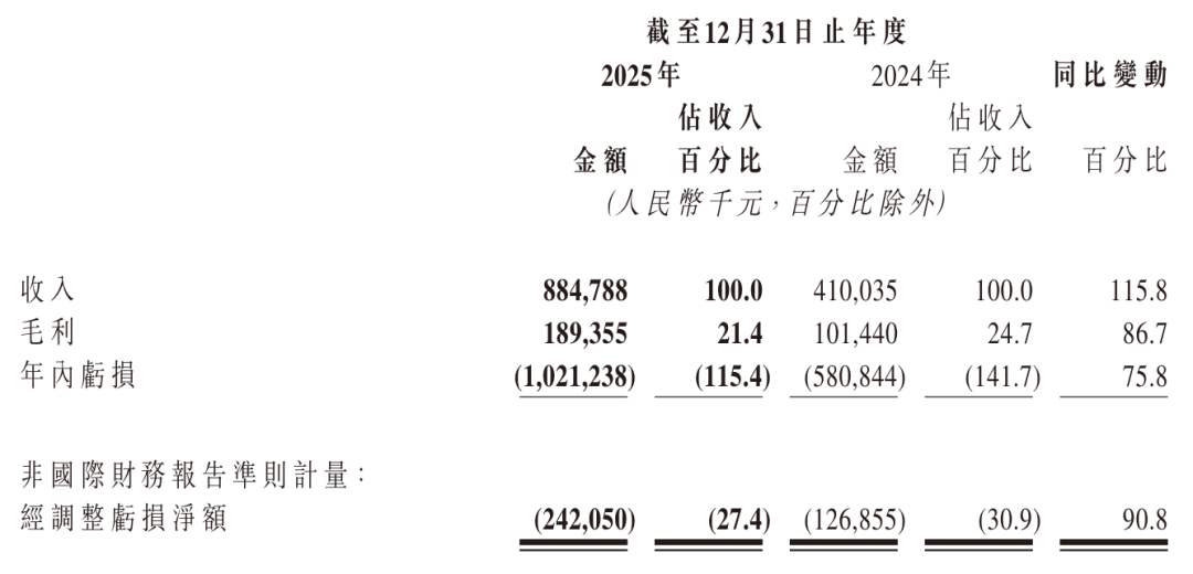 从盈利能力来看,希迪智驾2025年实现毛利1.89亿元,较上年同期的1亿元增长86.7%。然而,公司仍处于亏损状态,年内净亏损达10.21亿元,同比扩大75.8%;经调整净亏损为2.43亿元,同比扩大90.8%。这主要源于公司在研发和市场拓展方面的持续投入,以及无人驾驶矿卡业务尚处于规模化前的投入阶段。