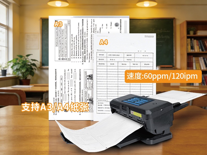 eScan系列针对教育行业高频、批量采集需求量身打造,支持A3/A4双幅面,全面适配作业、试卷、答题卡、教案、学籍档案等各类校园纸质资料。设备搭载高速自动进纸器,实现60ppm/120ipm高速双面扫描,上百页作业与试卷可在一分钟内完成高清数字化,从容应对班级日常作业收缴、年级统一检测、校园大型考试等批量处理场景,大幅缩短资料采集耗时。