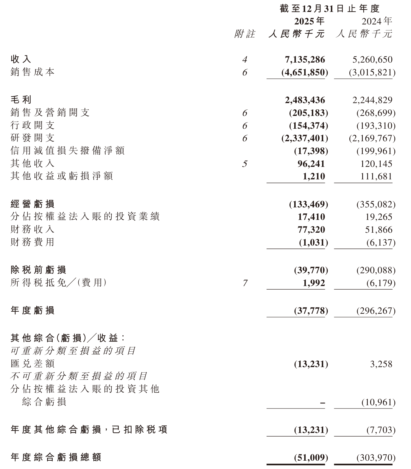 财务数据显示,范式智能2025年实现毛利24.83亿元,同比增长10.6%,但毛利率较上年的42.7%下降至34.8%,减少了7.9个百分点。公司解释称,这主要源于研发投入的增加和业务结构调整。报告期内,研发开支高达23.37亿元,占总收入的三分之一以上,显示出公司对技术创新的高度重视。同时,销售与营销开支为2.05亿元,行政开支为1.54亿元,均保持在合理水平。