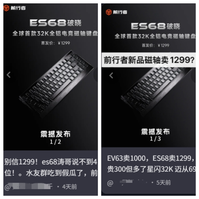 随着产品细节的陆续曝光,网传ES68破晓首发价1299元的消息,也在玩家群体中引发了广泛讨论。有玩家对比同价位竞品表示,全铝机身+32K方案的配置组合,在同价位产品中几乎无对手,其性能与用料的越级表现,有望打破中高端磁轴键盘的市场格局;也有玩家对0.008ms延迟的实测表现充满期待,认为这一参数或将成为电竞键盘的新标杆。 从曝光的玩家社群讨论来看,ES68破晓的关注度持续走高,不少外设博主与玩家已开始提前期待预售,希望能尽快上手体验,期待这款产品能带来颠覆性的电竞体验。