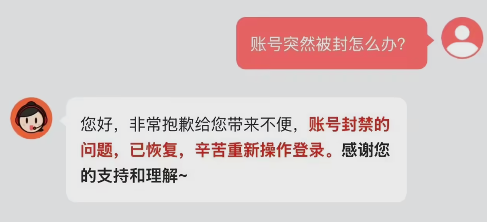 面对这一状况,网易云音乐客服及时作出回应。客服表示,该问题已经得到修复,此前账号被封禁的情况已恢复正常,用户现在可以重新操作登录。同时,客服对用户一直以来的支持与理解表达了感谢。