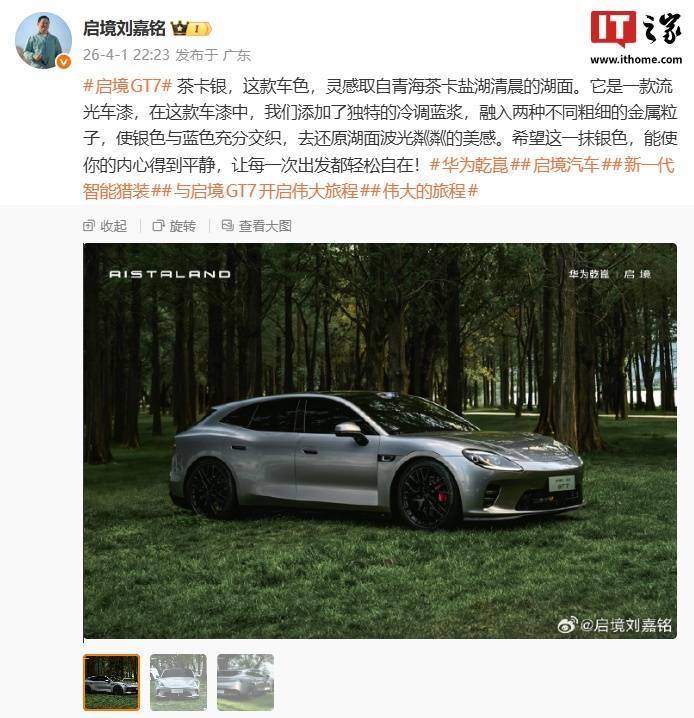 华为乾崑 | 启境汽车近日正式公布了旗下首款智能猎装车型GT7的「茶卡银」专属车色。这一灵感源自青海茶卡盐湖清晨湖面的独特配色,通过在车漆中融入冷调蓝浆与两种不同粒径的金属颗粒,实现了银色与蓝色的动态交织,完美复现了盐湖表面波光粼粼的视觉效果。