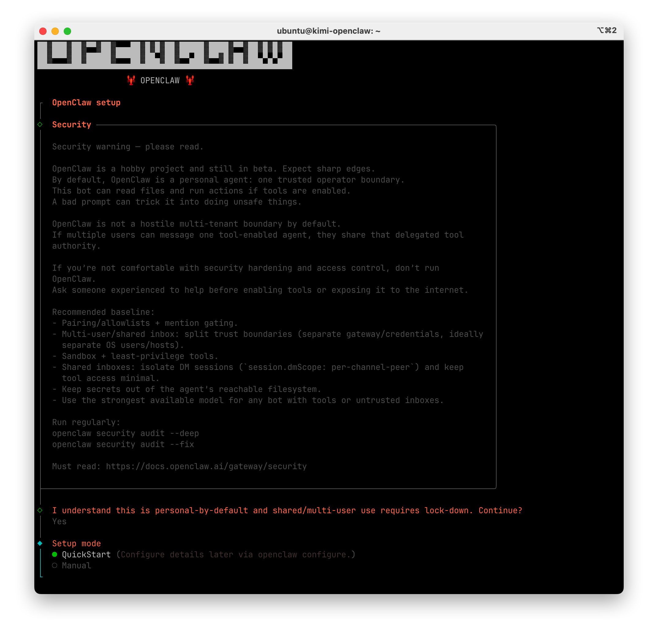 选择快速安装模式 QuickStart 并敲击回车确认