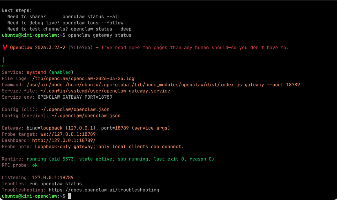 第四步:查看 OpenClaw 状态