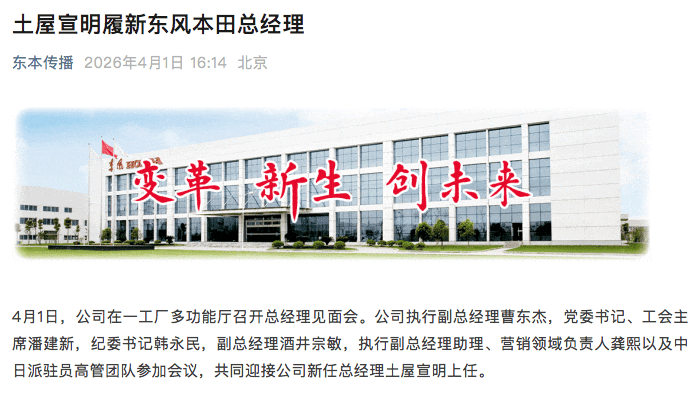 公开资料显示,土屋宣明于2001年加入本田技研工业株式会社,拥有超过二十年的汽车行业管理经验。其职业生涯横跨日本总部与中国市场,曾参与事业战略规划、商品企划、市场战略制定及成本控制等多个核心业务领域,在跨文化团队协作方面积累了丰富经验。此次履新前,他已深度参与东风本田多项战略决策的制定与实施。