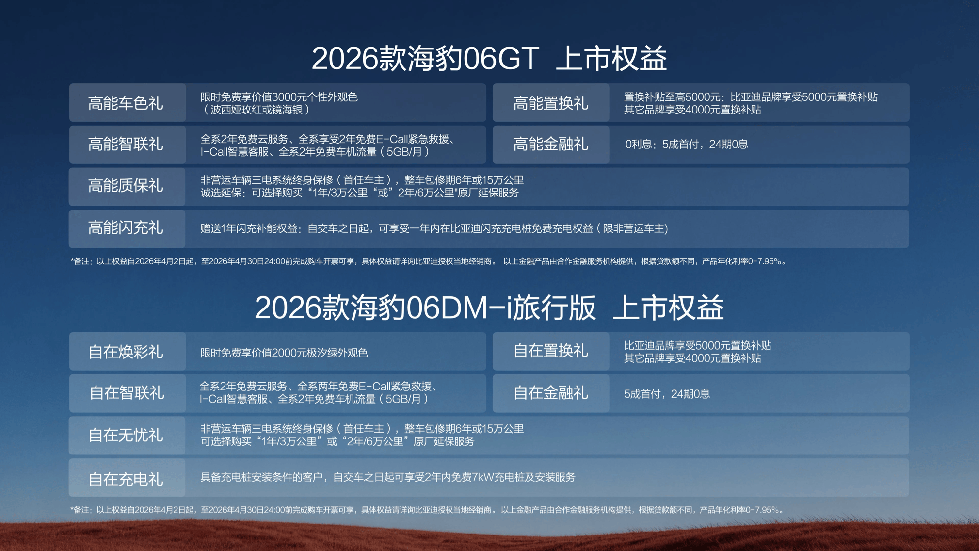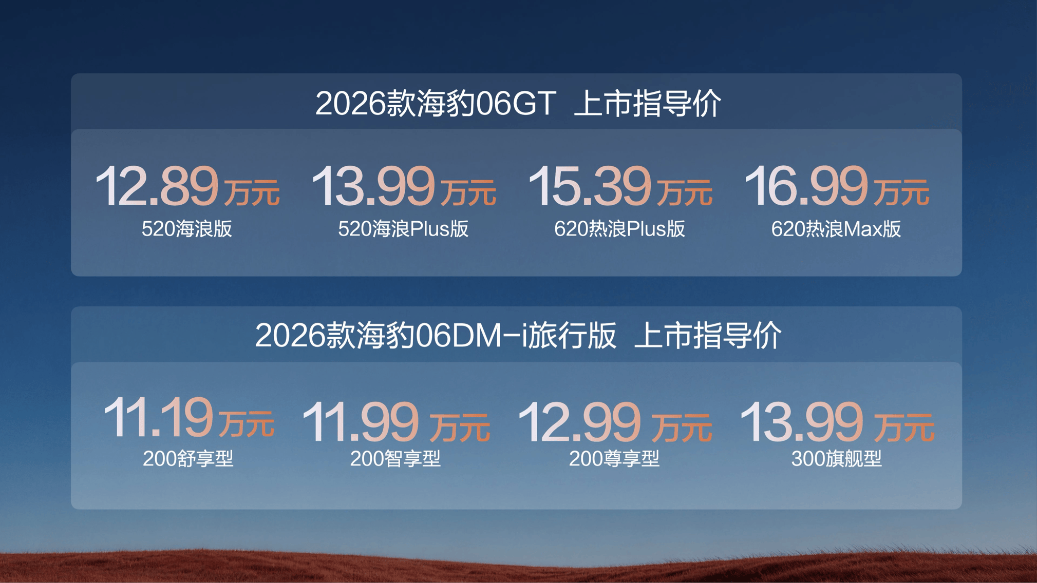 比亚迪海洋网近日正式发布两款全新车型——2026款海豹06GT与2026款海豹06DM-i旅行版,以11.19万至16.99万元的官方指导价区间切入市场,同步推出置换补贴、免费车色、2年0息金融方案及三电终身质保等权益,实现上市即交付。这一动作标志着比亚迪在10-17万元新能源市场发起新一轮攻势,通过技术普惠与场景创新重塑竞争格局。