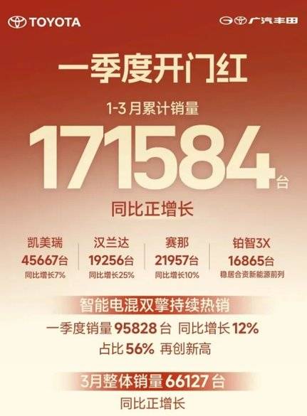 在新能源浪潮席卷汽车市场的当下,多数合资品牌面临销量压力,广汽丰田却交出了一份令人瞩目的成绩单。数据显示,该品牌3月零售销量达66127辆,一季度累计销量突破171584辆,两项数据均实现同比正增长,在合资阵营中脱颖而出。