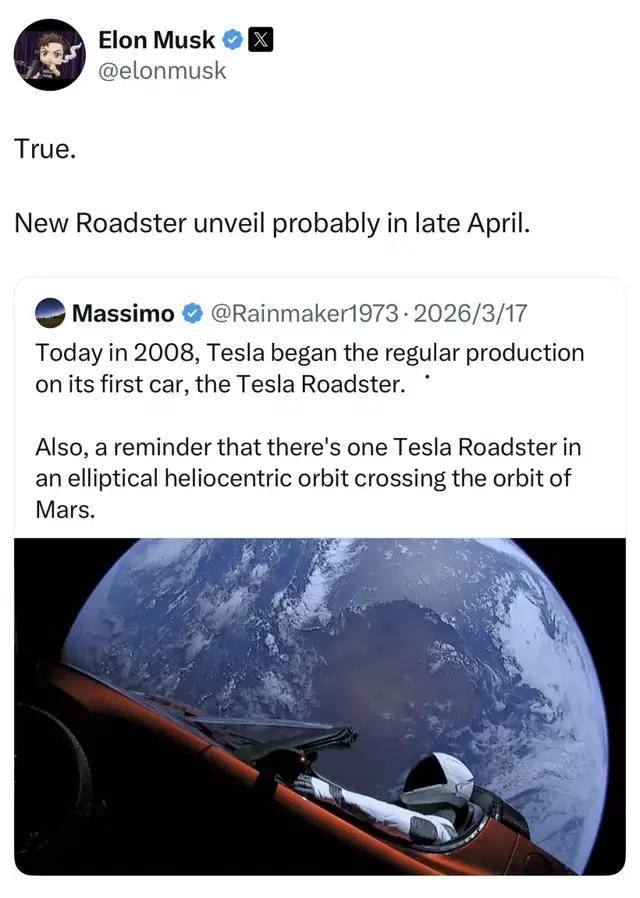 特斯拉即将迎来一款备受瞩目的新车型——新款Roadster跑车。据特斯拉CEO马斯克此前在社交平台透露,这款跑车计划于四月份下旬正式发布,随着时间临近,车迷们的期待值也在不断攀升。