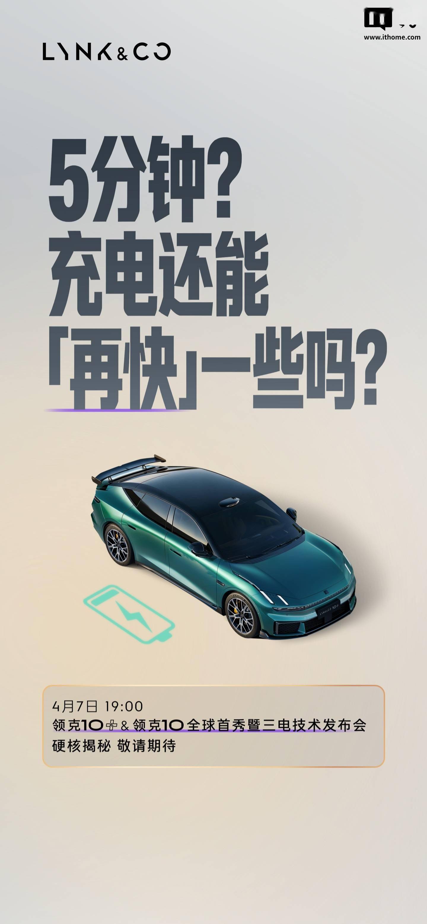 领克汽车近日宣布,将于4月7日19:00举办领克10+与领克10的全球首秀暨三电技术发布会。此次发布会将聚焦新能源汽车核心技术,重点解答电芯与电池在极端条件下的安全性、电驱系统在连续高强度工况下的稳定性,以及充电效率提升等消费者关注的热点问题。