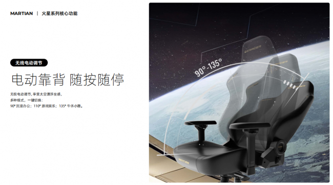 航天级电动无极靠背系统,灵活调节,彰显电竞椅全能便捷实力