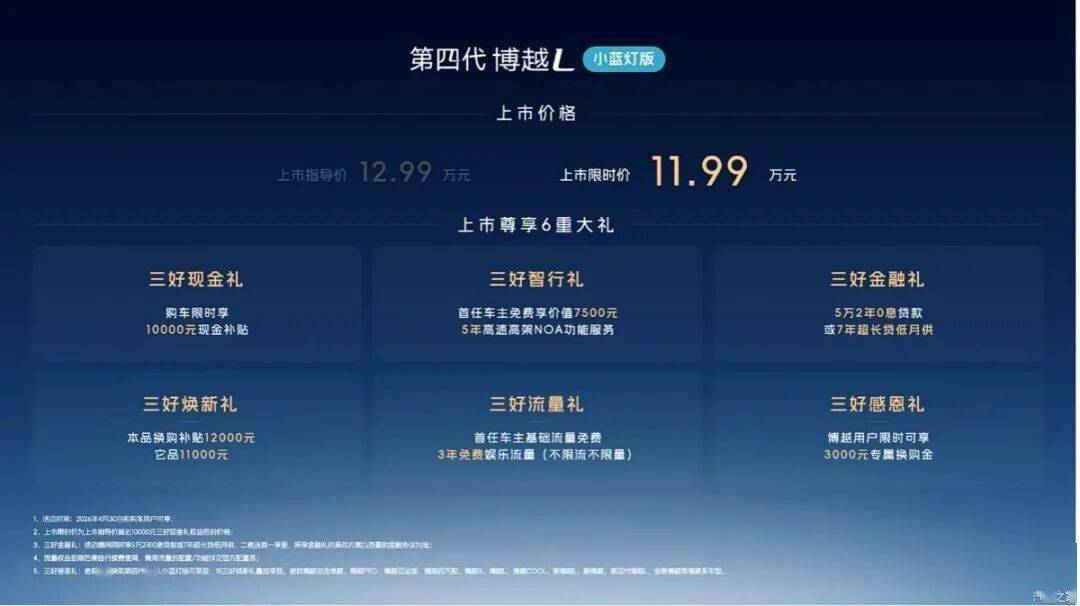 即日起至4月30日,购车用户可享12000元换购补贴,博越车主额外叠加3000元专属补贴,同时提供7年超长贷等六重上市礼遇。作为长安CS75PLUS的直接竞争对手,博越L小蓝灯版通过辅助驾驶升级和豪华配置提升,在15万级SUV市场形成差异化竞争力,其智能化、安全性和动力性能的全面进化,为消费者提供了更具吸引力的选择。