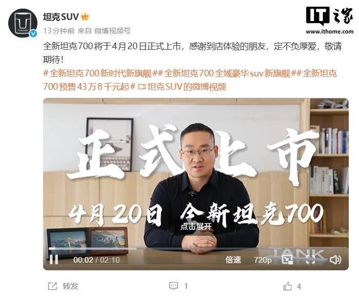 长城汽车旗下坦克品牌近日宣布,备受瞩目的全新坦克700将于4月20日正式登陆市场。此前,该车型已于3月30日启动预售,预售价区间设定为43.8万元至51.8万元,引发了市场的广泛关注。