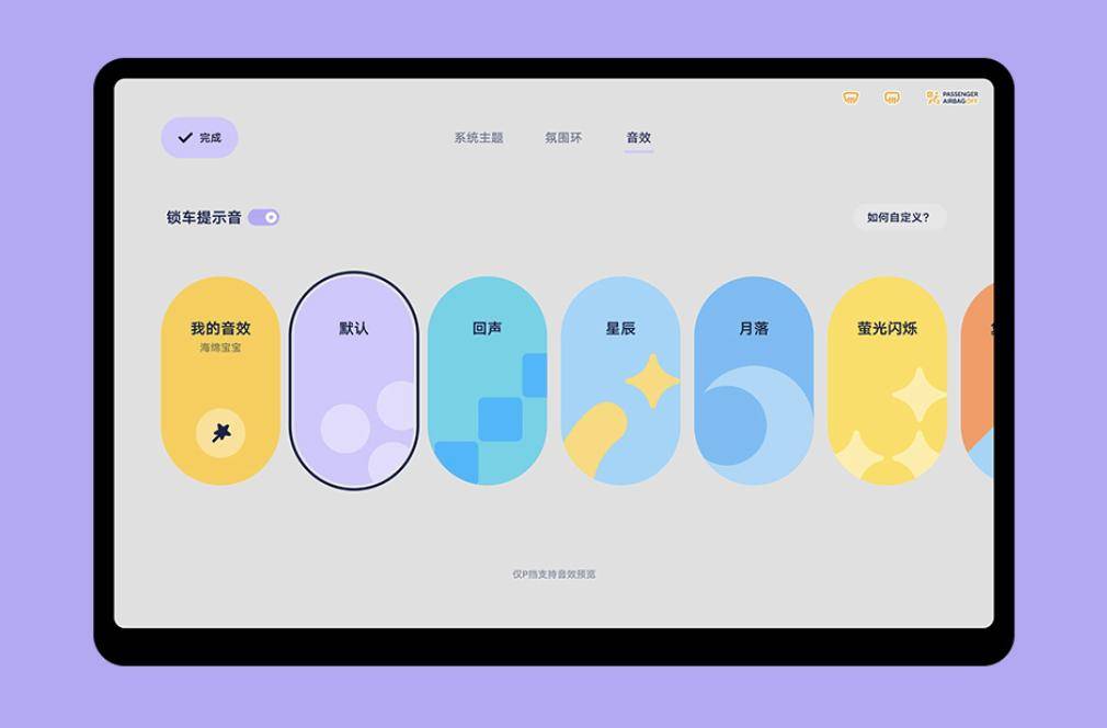 系统交互方面,此次更新新增自定义锁车音功能,用户除预设锁车音外,还可通过U盘上传个性音效,打造专属用车体验。萤火虫乐队氛围环的加入则为桌面增添了解压神器,用户可点击氛围环进行音乐弹奏,支持切换单音、和弦模式,或进入引导模式演奏经典曲目,更有彩蛋喵喵唱歌等你发现。千禧漫波系统主题则以标志性点线元素融合“新生绿”点缀,还原千禧美学,主题时钟氛围环支持动态交互,点击或滑动时可平滑切换至三维视角,呈现深邃、灵动的空间质感。仪表竞速光环卡片也新增时间显示功能,满足高频用户需求。