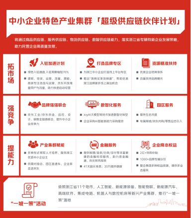 4月10日,浙江省经信厅与京东集团联合启动“超级供应链伙伴计划”,政企协同打造国内首个省级专精特新数字化转型综合服务平台,深度对接浙江省建设全球先进制造业基地战略,依托京东在商品、物流、科技、金融等领域的超级供应链能力,推动浙江制造业和专精特新企业高质量发展。