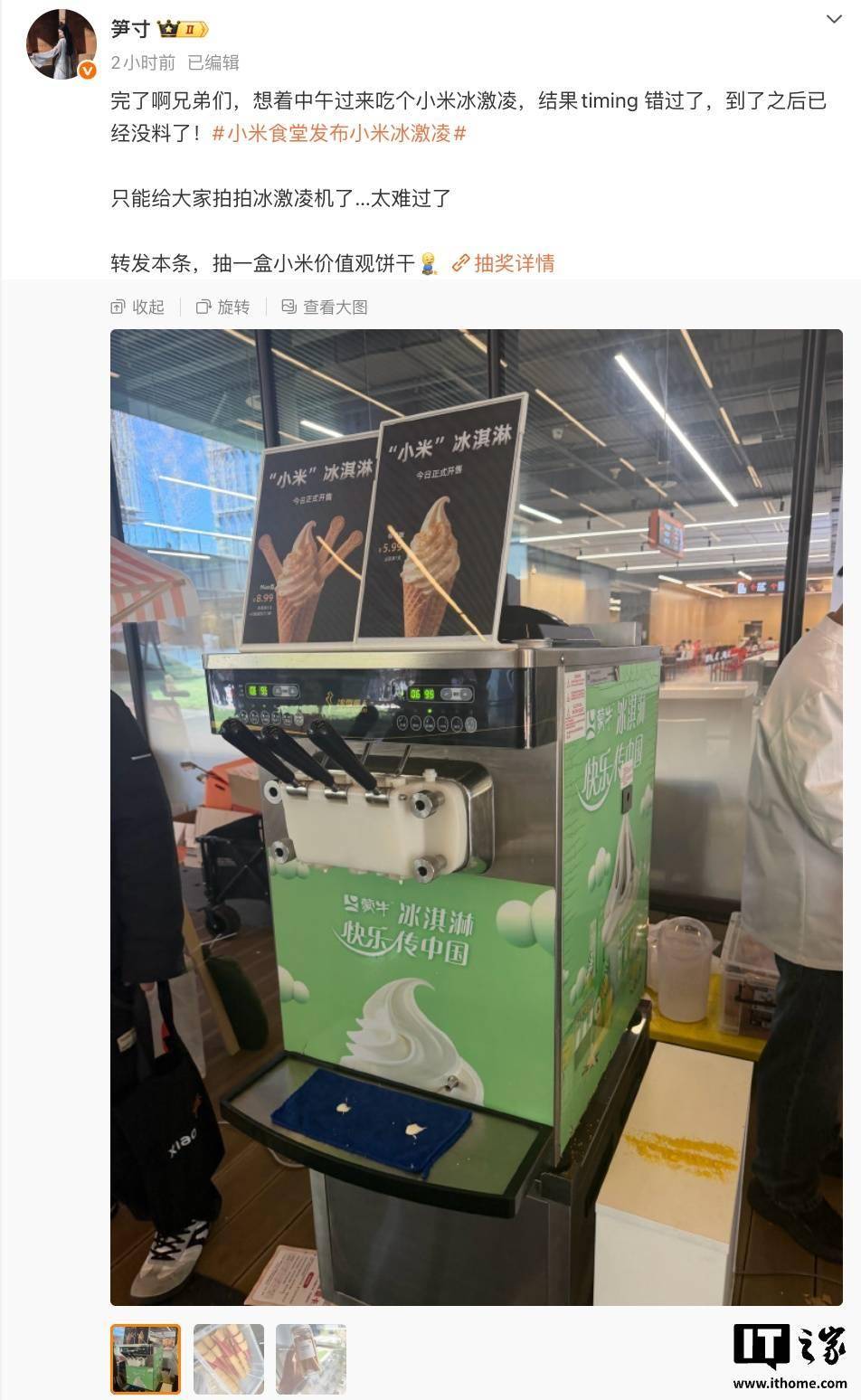 从公开的照片中可以看到,制作小米冰淇淋的机器上印有“蒙牛”的标识,表明这款产品可能与知名乳制品企业蒙牛存在合作关系。这一细节也引发了网友对小米未来是否会拓展食品业务的猜测。