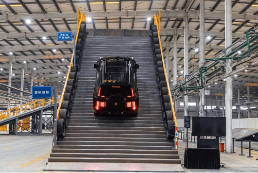 在45度超滑可变坡道测试中,车辆不仅实现了正爬、倒爬的稳定操控,更在半坡悬停、半坡起步等高难度动作中表现出色。面对仅有35度倾角、接触面狭窄的钢制天门山天梯复刻场景,仰望U8以倒爬方式完成挑战,其流畅度与稳定性颠覆了传统越野车的认知边界。这些突破性表现,源于车辆搭载的eTCS 2.0全速域路面感知控制技术,该系统通过易四方四轮独立扭矩矢量控制,可实时感知路面附着力变化,并在毫秒间完成四轮扭矩的智能分配。