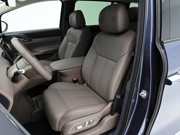 座椅布局采用2+2+3形式,前排配备头枕音响系统,第二排零重力座椅支持16点按摩、通风加热功能,并标配吸顶屏、小桌板与车载冰箱等豪华配置。动力系统由1.5T发动机与电机组成的增程式架构构成,综合功率达227kW,峰值扭矩320N·m,支持3C快充技术。华为雪鸮智能静音技术的运用,有效降低了增程器工作时的噪音干扰。