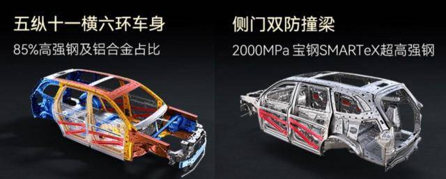 被动安全方面,华境S同样表现出色。高强度钢和铝合金占比达85.05%,其中热成型超高强钢占比29.97%。乘员舱部分搭载全球首创的1500MPa一体式热成型地板骨架与1500MPa一体式热成型门环两大专利技术,同时配备1500mm超长铝合金防撞梁和2000MPa四门八处防撞梁,正向和侧向安全防护全面。