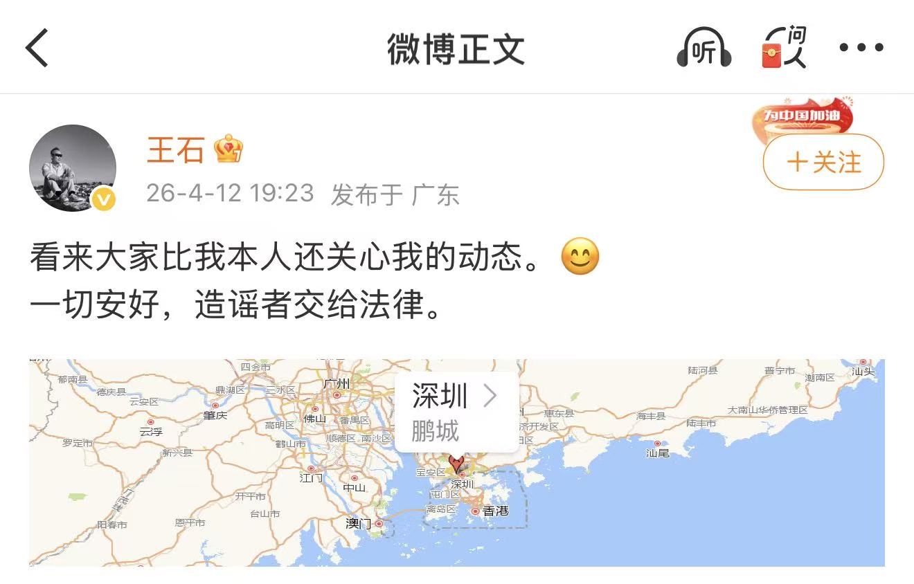 据王石微博发布的定位信息显示,他目前正身处万科总部所在地深圳,这进一步证实了谣言的不实性。万科地产作为国内知名的房地产企业,其创始人王石的一举一动都备受关注,但此次谣言显然是对其个人名誉的恶意中伤。