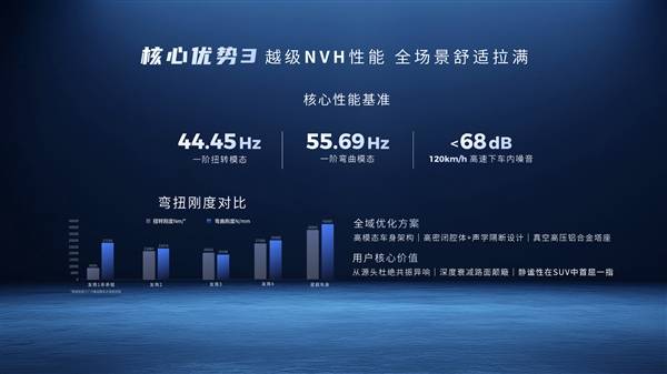 在舒适性方面,星舰车身通过优化一阶扭转模态(44.45Hz)与一阶弯曲模态(55.69Hz),配合高密闭腔体与声学隔断设计,显著降低高速行驶时的噪音。实测数据显示,车辆以120km/h行驶时,车内噪音低于68分贝,达到豪华车型的静谧性标准。