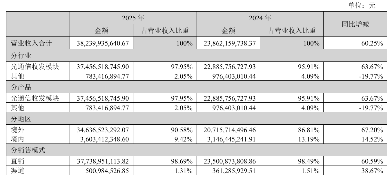 中际旭创2025年成绩亮眼:营收382.4亿 净利破百亿达108亿