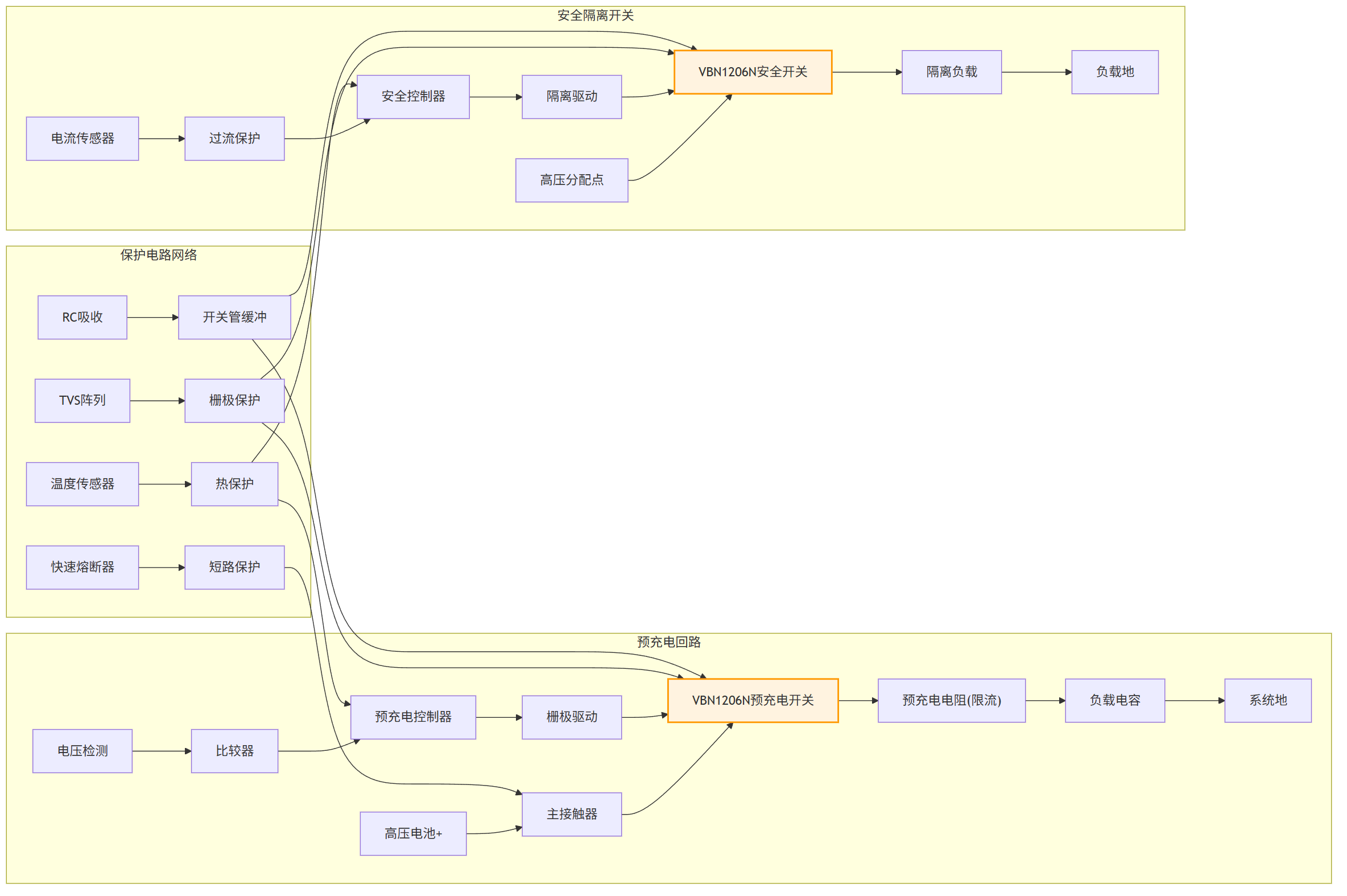 以VBK5213N为例,这款采用Trench技术的功率MOSFET,在200V耐压下实现了极低的Rds(on)(10V驱动时仅50mΩ),连续电流能力高达35A。其TO-262封装在保证散热能力的同时,还提供了电气绝缘,提升了系统安全性。这些特性使其非常适合作为主接触器之外的预充电电阻旁路开关或高压分配箱内的固态隔离开关。在预充电回路中,它可长期闭合工作,导通损耗极低;快速开关特性则便于实现主动预充电控制与故障快速切断。不过,用于预充电回路时需评估其承受的浪涌电流;作为安全开关则需配合快速熔断器及电压/电流检测电路,构成多重保护。
