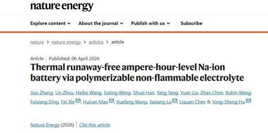 该团队由胡勇胜研究员领衔,其研究成果发表于国际顶级能源期刊《自然・能源》。研究指出,传统碳酸酯类电解质虽具备优异电化学性能,但其易燃特性极易引发链式热失控反应。此前行业普遍认为“阻燃即安全”,但团队通过实验证实,即使采用阻燃型磷酸酯电解质,电池在极端条件下仍可能发生严重事故。这一发现颠覆了长期以来的技术认知,促使研究转向更主动的安全防护机制。