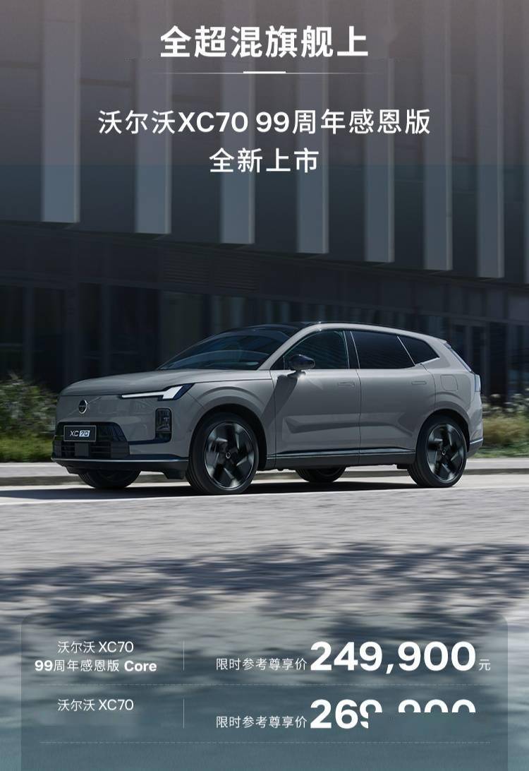 在沃尔沃品牌迎来99周年之际,其全新推出的XC70汽车99周年感恩版正式登陆市场。这款被定位为“安全超混旗舰”的中大型SUV,基于先进的SMA超级混动架构精心打造,为消费者提供了单电机前驱和双电机四驱两种动力选择,限时起售价仅为24.99万元。