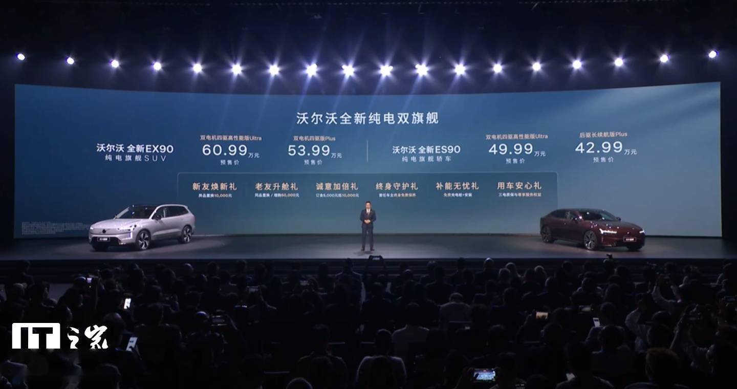 沃尔沃在品牌新品发布会上正式推出全新EX90纯电旗舰SUV,开启预售。新车提供双电机四驱版Plus和双电机四驱高性能版Ultra两款配置,预售价分别为53.99万元和60.99万元。作为品牌首款基于SPA2原生豪华纯电架构打造的车型,EX90全系搭载800伏高压平台,CLTC工况下最高续航里程达756公里,采用2+3+2七座布局设计。