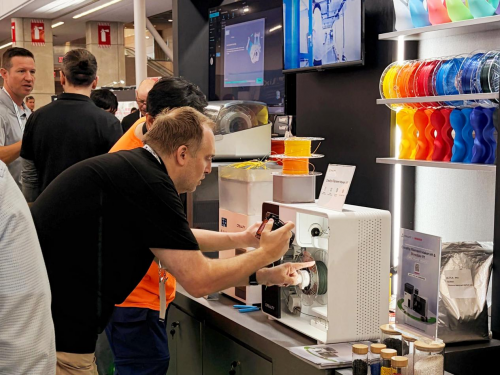 展会现场,众多观众亲眼见证了废料粉碎再生耗材的全过程,纷纷表示“这个产品太实用了,既节省成本又环保,很适合工作室使用”。