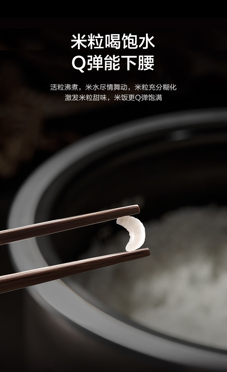 2. 加热方式:优先选IH电磁加热,米粒受热一致,口感更饱满,还能快速升温,节省烹饪时间。高端款会搭配远红外加热等辅助技术,能进一步激发米香,提升口感。