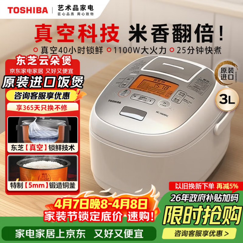 推荐型号:东芝电饭煲云朵煲10VRPC(日本进口款,精致小户型首选)