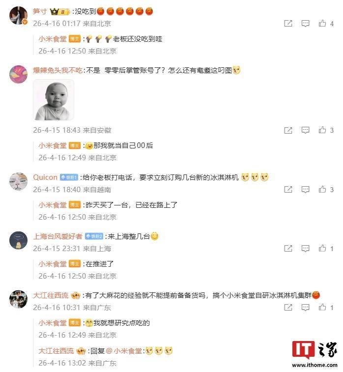 为应对持续需求,小米食堂已紧急采购新设备。有员工在评论区透露,新冰淇淋机正在运输途中,预计很快能恢复供应。值得注意的是,小米REDMI产品经理也在社交平台留言称尚未品尝到这款新品,引发网友对产品分配机制的讨论。