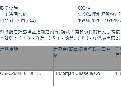 格隆汇4月16日丨根据联交所最新权益披露资料显示,2026年4月14日,潍柴动力(02338.HK)获Wellington Management Group LLP在场内以每股均价32.9695港元增持395.11万股,涉资约1.3亿港元。