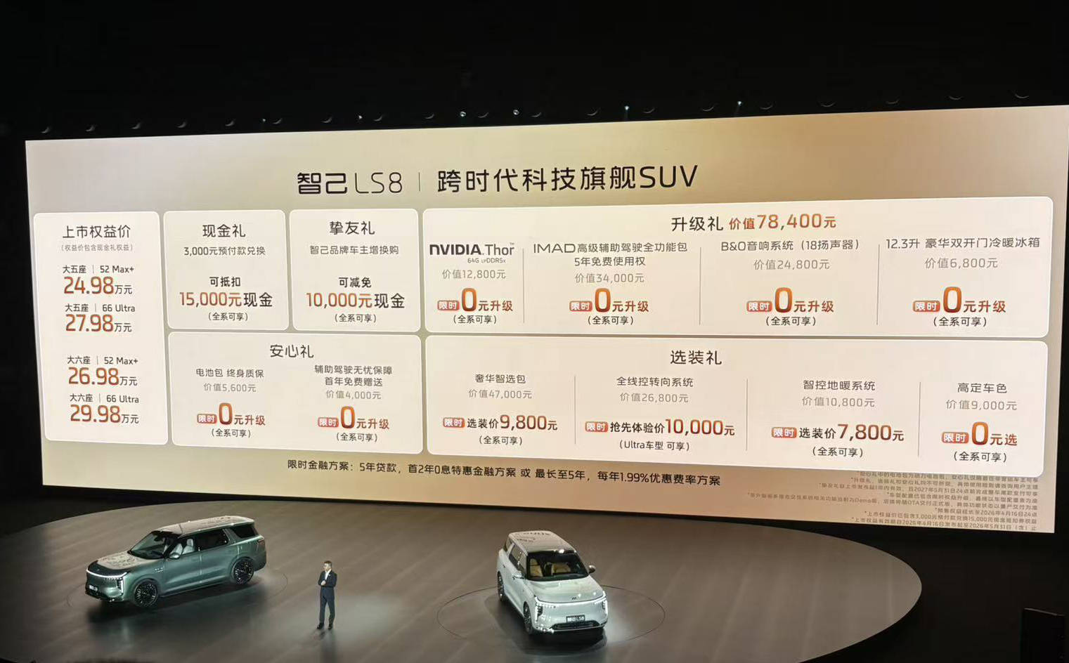近日,智己汽车旗下全新中大型SUV——智己LS8正式宣布上市。此次共推出4款车型,官方指导价区间为26.18万元至31.18万元,上市权益价则为24.98万元至29.98万元。作为一款基于800V高压平台打造的车型,智己LS8搭载了恒星超级增程动力系统,最大综合续航里程可达1605公里,为消费者提供了更为强劲的动力和更长的续航选择。