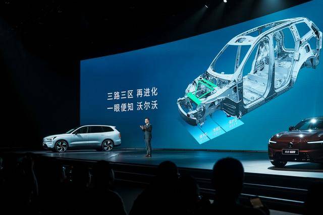在安全性能方面,沃尔沃始终秉持“在正确的地方使用最正确的材料”的理念。以EX90为例,作为一款中大型纯电SUV,它并未简单照搬XC90的笼式车身设计,而是针对纯电车的特性重新设计了车身结构。在正面碰撞时,EX90的车身遵循“三路三区”的设计逻辑,对结构梁系统进行了加固,采用全铝三横梁加V字型纵梁形成更稳定的结构。EX90还将空气悬挂的气罐融入前机舱设计,使功能件同时成为安全件,展现了沃尔沃在安全设计上的创新思维。