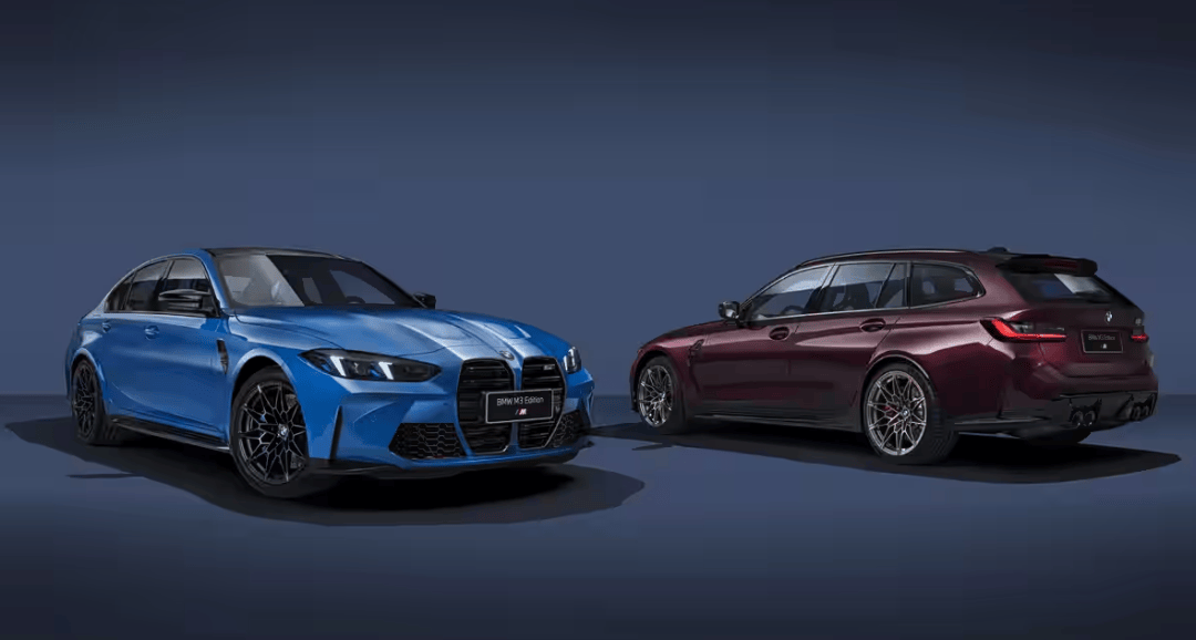 两款限量版车型在外观设计上各具特色。轿车版采用拉古纳塞卡蓝车漆,这一经典配色源自E46 M3,搭配黑色826M多辐轮圈(前19寸/后20寸)及蓝色M卡钳,双肾格栅首次采用黑色边框,配合熏黑灯组,整体造型更显凌厉。旅行版则大胆选用野莓红车漆,搭配赤金铜色轮圈与红色卡钳,这种配色组合在M3历史上极为罕见,辨识度极高。车身细节处,两车均配备“40周年限量版”专属徽标,从车顶到迎宾踏板、从座椅头枕到中央杯架,处处彰显限量身份。