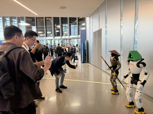 就在赛事上线的同一天,智元线下生态大会现场率先验证了这股即将到来的热潮。在大会展区,装扮着创想三维吉祥物“Maker”头盔的机器人,以及头戴3D打印斗笠、手握武棍的“少林武僧”形象机器人一经亮相,吸引大量观众驻足并排队合影,直观印证市场对于具身机器人个性化改装的强烈好奇与需求。