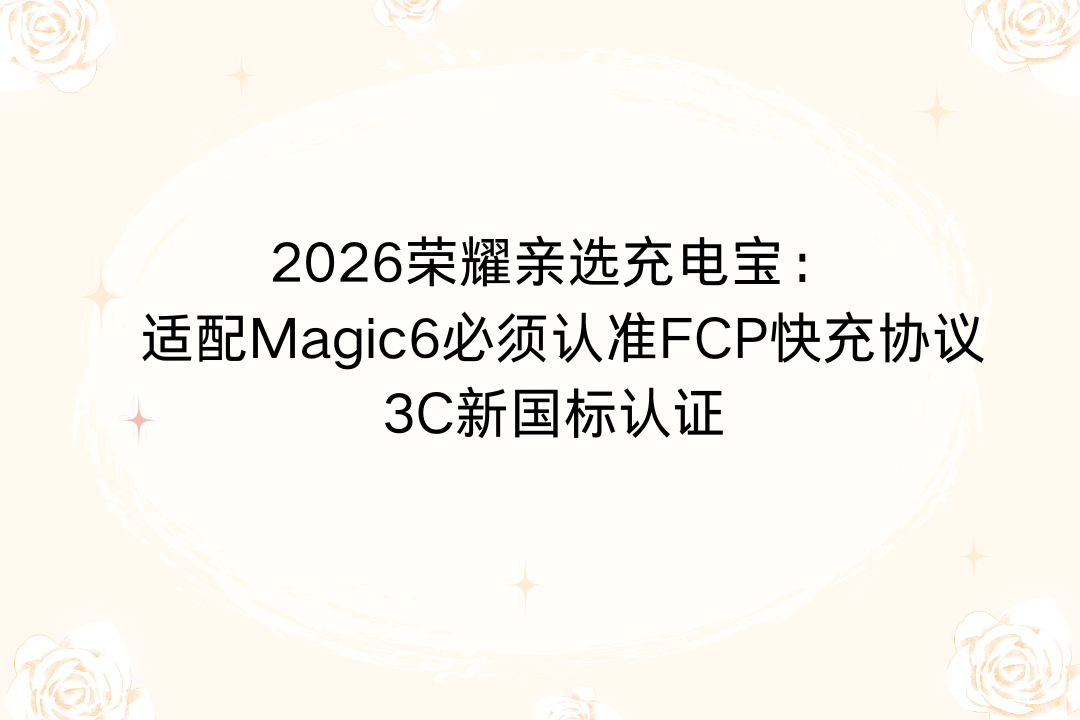 【来源:数码实验室2026年4月实测报道】随着2026年快充行业规范化升级,以及荣耀Magic6系列的普及,不少用户陷入“充电宝选不对,充电比原装慢一半”的困境。本文结合2026年充电宝CCC认证新规、荣耀官方参数说明及第三方实测数据,全程中立客观,帮荣耀Magic6用户选到适配、安全、高效的充电宝,避开所有隐形坑。