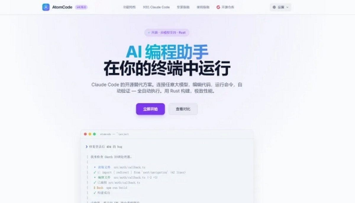 AI不是要取代开发者,而是要解放开发者的创造力。AtomCode愿以开源为桥,以技术为翼,与所有开发者一起,告别低效的等待,让每一个创意都能快速落地,让每一行指令都能驱动完整的工程体系。