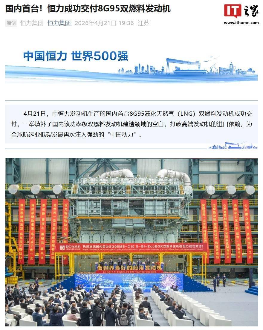恒力集团旗下恒力发动机公司近日宣布,其自主研发的国内首台8G95液化天然气(LNG)双燃料发动机已完成交付。这款功率达74725马力的重型发动机,标志着我国在高端船舶动力领域实现重大技术突破,成功打破国外品牌长期垄断的局面。