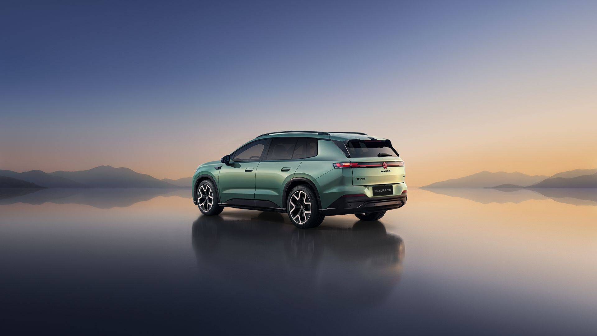 ID. AURA T6的设计语言强调功能与美学的平衡,通过稳健的车身比例与流畅的线条勾勒出实用主义基调。其轴长比经过优化,既保证车内空间充裕,又避免长轴距带来的操控隐患;贯穿式腰线与高亮黑轮眉强化了视觉稳定性,前机盖的肌肉线条与尾部几何设计则凸显SUV的力量感。科技配置方面,激光雷达、驾驶辅助小蓝灯与摄像头采用集成化设计,既提升功能性又保持外观整洁。
