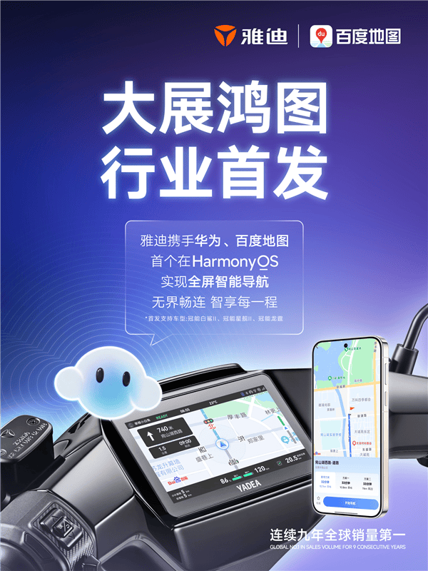 百度地图近日宣布与雅迪达成深度合作,共同推出基于华为鸿蒙系统的两轮车导航投屏功能。此次技术突破使百度地图成为行业内首个支持鸿蒙系统两轮车导航的地图服务商,标志着智能出行领域在两轮交通工具场景中实现重要进展。