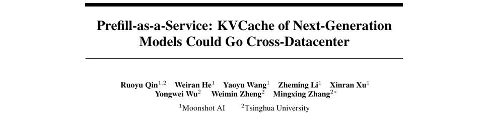 就在5天前,月之暗面与清华大学联手发布了一篇论文,名为《Prefill-as-a-Service: KVCache of Next-Generation Models Could Go Cross-Datacenter》。
