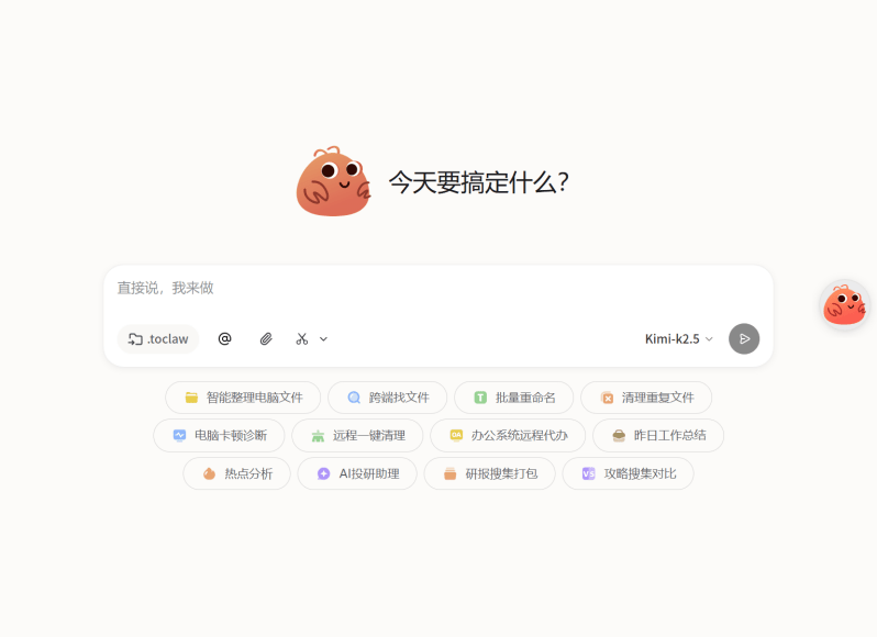 用户只需像日常聊天一样说出需求,ToClaw就会自动判断任务类型、调用对应技能完成操作——全程模拟人类的操作路径,真正实现“动口不动手”。