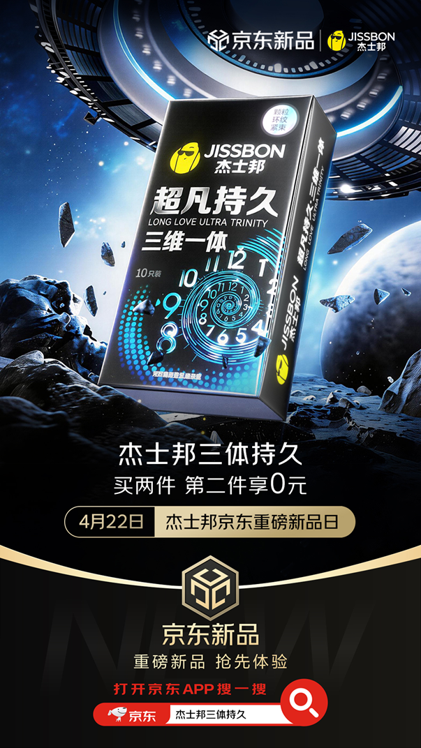 4月22日,杰士邦全新力作——三体持久安全套在京东健康独家首发。这款集持久、舒适、情趣于一体的创新产品,致力为消费者带来更愉悦、安心的亲密体验。用户可打开京东APP,搜索“杰士邦新品日”直达首发页面。此次新品首发,是京东健康与杰士邦母公司乐福思健康集团深度战略协同的又一标志性成果,印证了京东健康作为品牌新品首发核心阵地与行业增长引擎的重要价值。