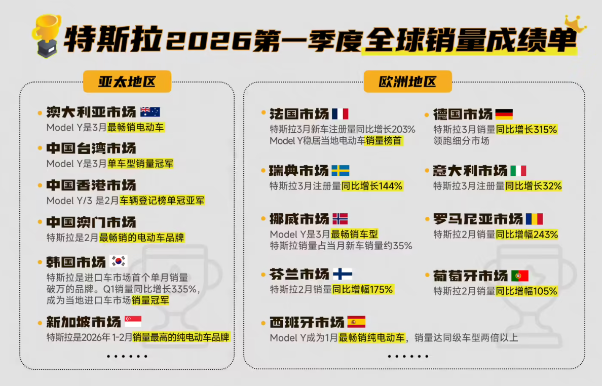 在智能化领域,特斯拉持续取得突破。截至2026年第一季度,全球使用特斯拉智能辅助驾驶功能的付费用户已接近130万。公司全球车主总数也已突破900万大关,显示出消费者对特斯拉产品和技术的广泛认可。