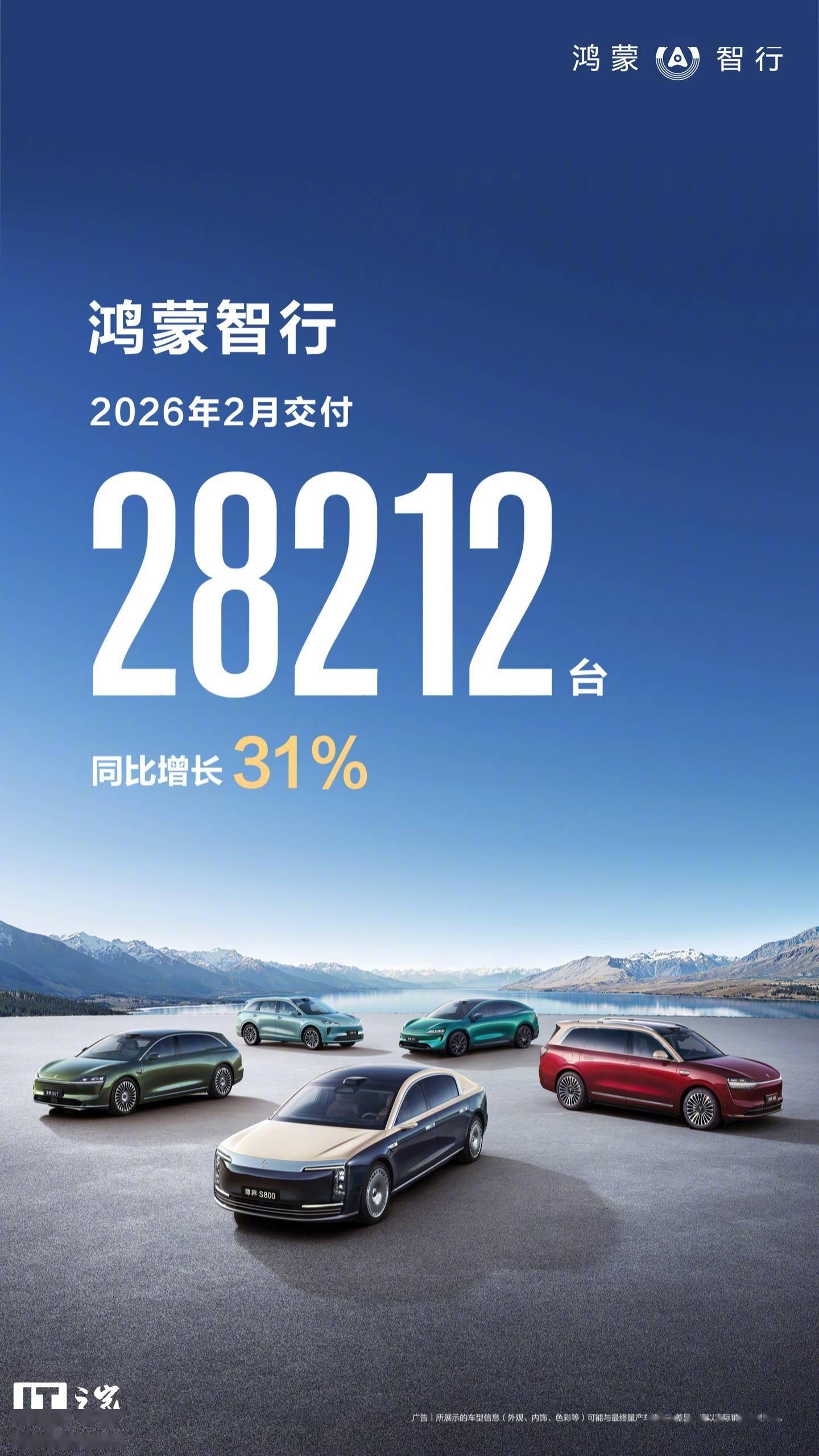 单月交付数据同样亮眼。今年2月,鸿蒙智行交付量达28,212辆,同比增长31%,展现出稳定的市场需求。通过不断优化的产品矩阵与日益完善的服务生态,品牌正在构建覆盖购车、用车全周期的用户价值体系,为新能源汽车市场注入新的发展动能。