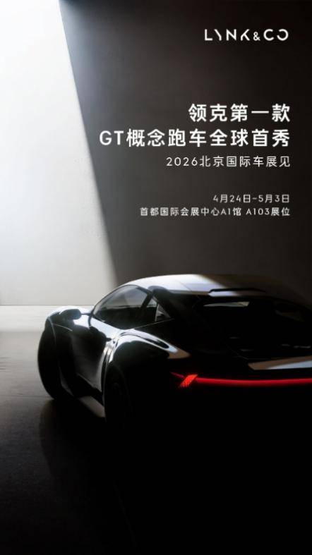 领克品牌即将在2026北京国际车展上揭开其首款GT概念跑车的神秘面纱。从官方发布的预告海报中可以窥见,这款新车以经典双门GT跑车造型亮相,流畅的车身线条勾勒出极具力量感的宽体轮廓,搭配标志性尾灯设计,展现出强烈的视觉冲击力与辨识度。