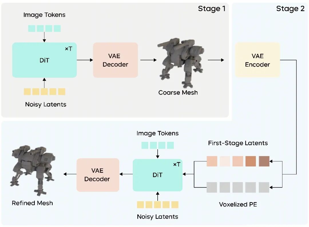 技术架构层面,Seed3D 2.0创新采用"先整体后细节"的生成策略,通过粗粒度与细粒度两阶段处理,将宏观结构与微观特征解耦优化。其混合专家(MoE)架构可动态分配计算资源,在保持高分辨率输出的同时,将材质边界精度提升至亚像素级别。模型引入视觉语言模型(VLM)先验知识,使其在文本描述转3D模型的任务中,对光照、材质等属性的理解准确率提升40%。